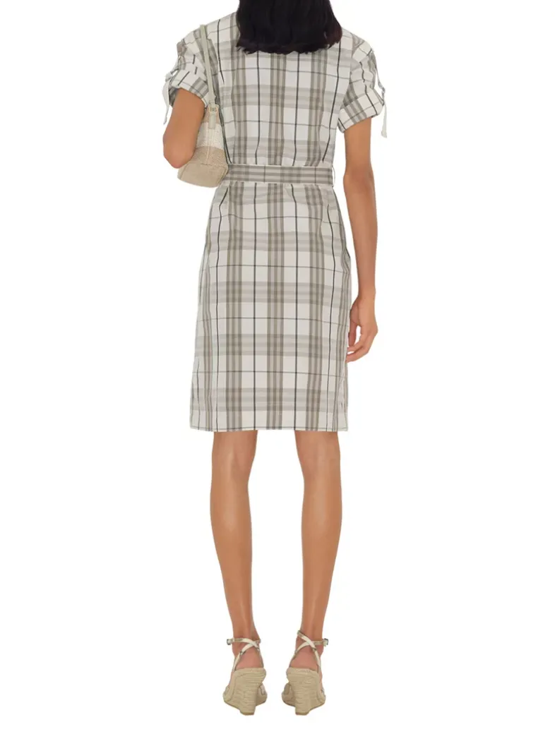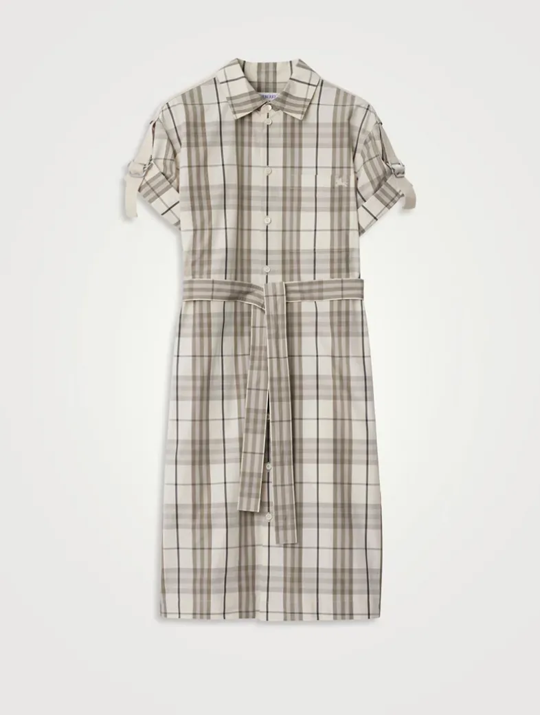 A shirt dress in Italian-woven cotton twill, patterned with the Burberry Check and tailored to a regular fit. Adjust the silhouette with the self-tie belt and adjustable B buckle straps at the folded cuffs. Our Equestrian Knight Design is embroidered at the chest pocket.