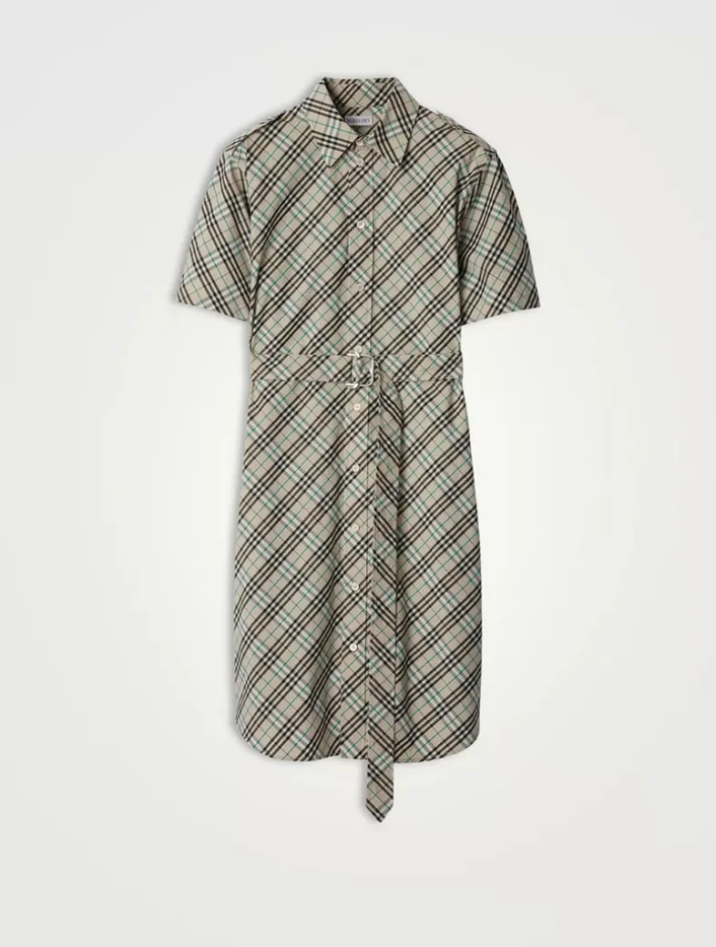 A short-sleeved shirt dress in Italian-woven cotton patterned with the Burberry Check. Cut to a regular fit, the style features epaulettes inspired by our signature trench coats and can be cinched at the waist with the adjustable belt.