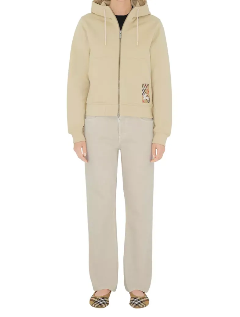 A zip hoodie in lightweight loop-back cotton. The style features an appliquéd patch woven with the Burberry Check, logo and Equestrian Knight Design.