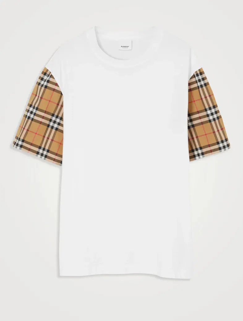 A cotton jersey T-shirt with contrasting sleeves in Burberry Check. The crew-neck style is cut to an oversized fit.