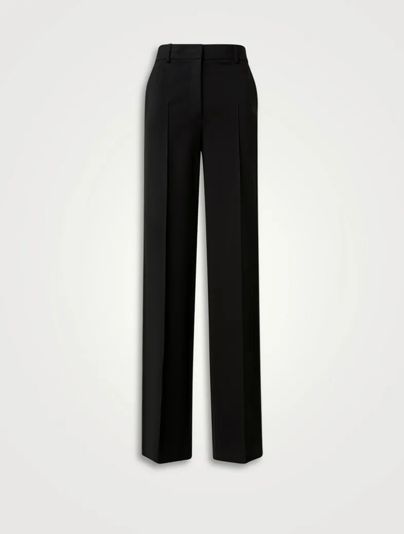 These jersey trousers are cut to sit high on the waist and fall to a relaxed, full-length silhouette. They have straight legs with slash pockets at the waist and welt pockets at the rear.