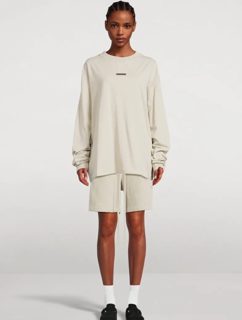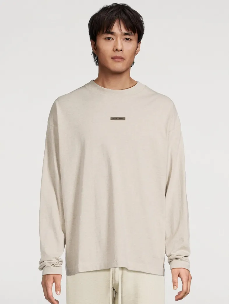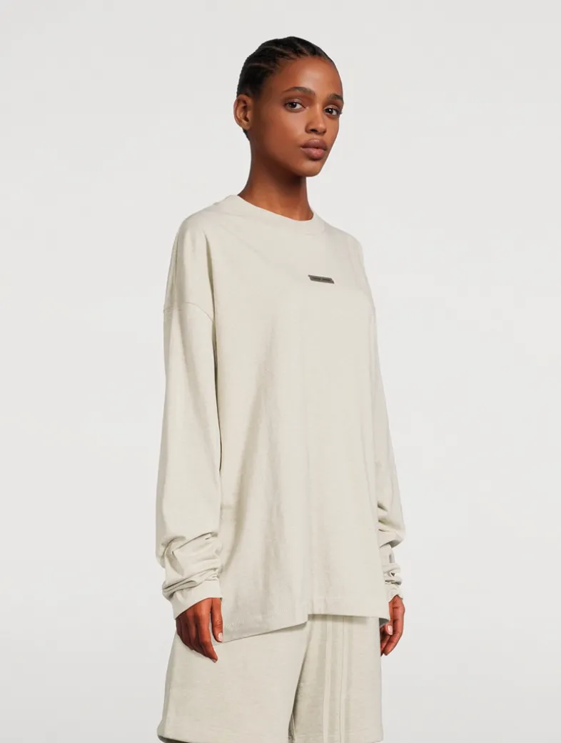 Made from core 100% cotton jersey with a premium hand feel, this gender-neutral tee is designed with a rib-knit crewneck, long sleeves, and dropped shoulders. It features a signature