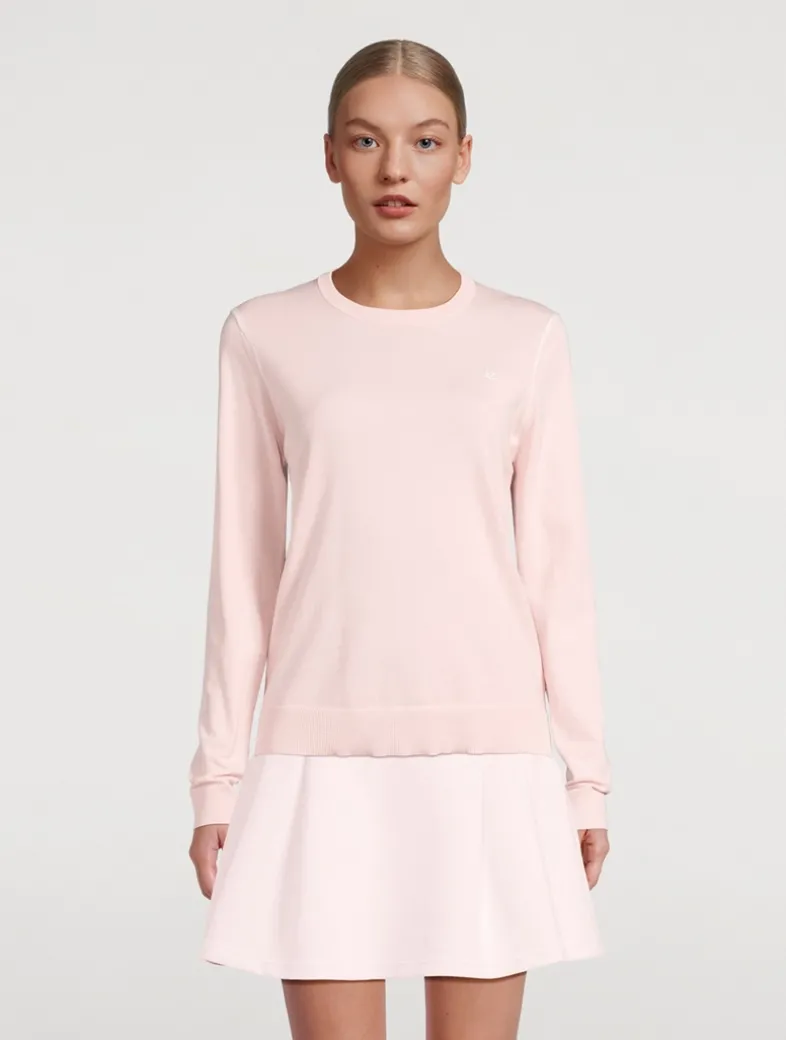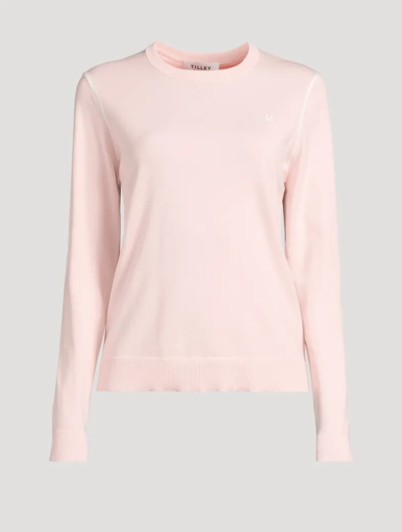 This pullover is made with heat-treated performance cotton for improved moisture wicking and shape retention ability. It is finished with subtle accents including contrast piping down the side seams and embroidered swallow logo.