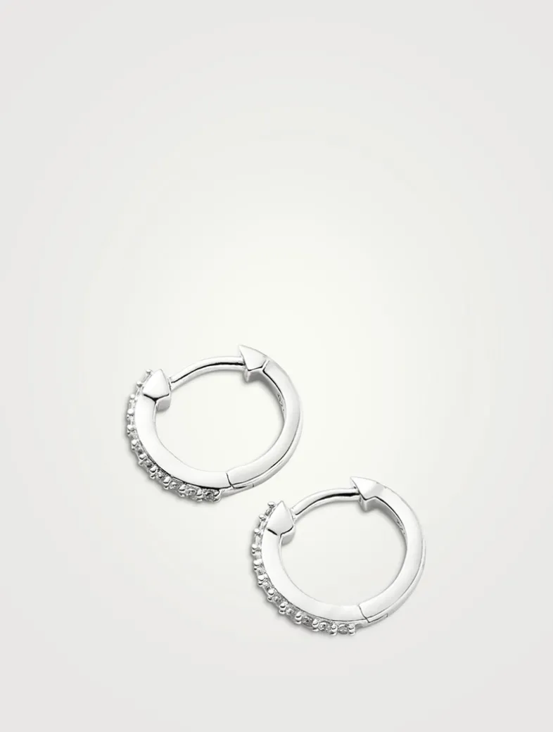 Your ear stack, upgraded. These mini hoop earrings are set with pavé stones. Team with statement hoops for everyday stacking or wear solo for pared back styling. The size of this earring is best for those with smaller lobes, or perfect for second or third piercings.