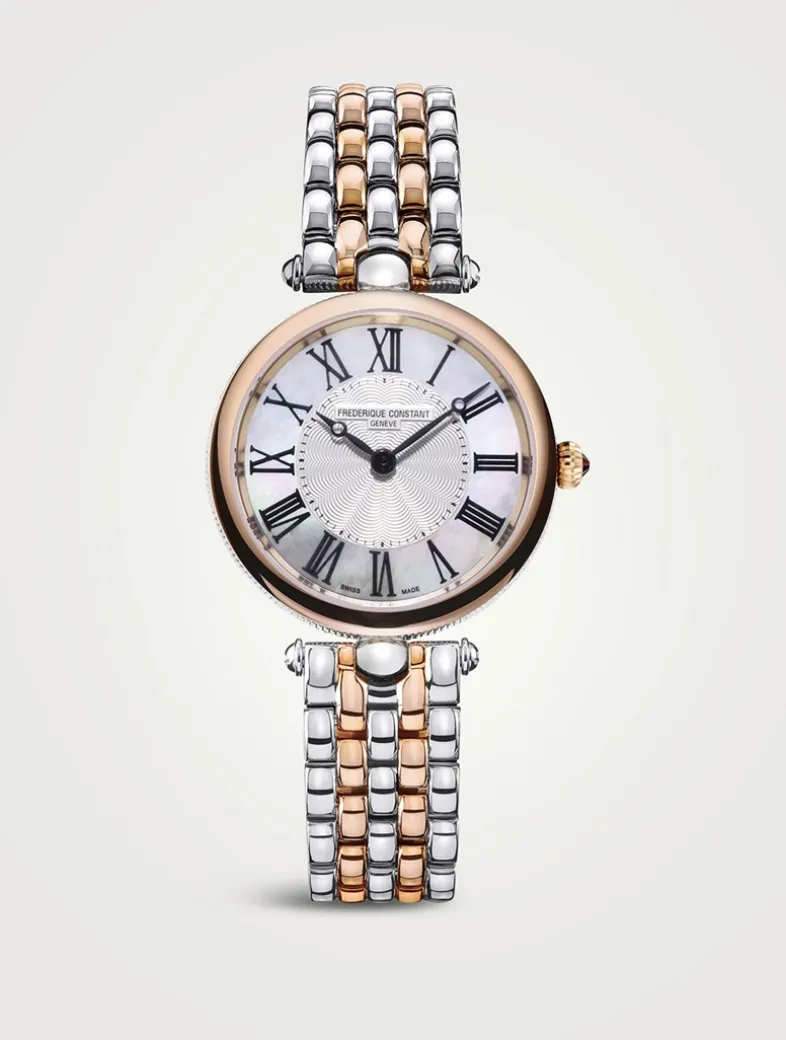 An elegant silhouette, the Classics Art Déco Round watch features a Mother-of-Pearl and