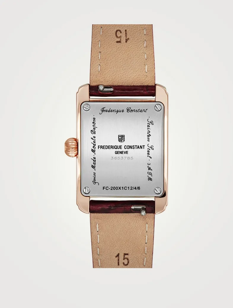 Featuring clean lines and an elegant polished square case, this watch showcases a classic white dial adorned with a decorative clous de Paris motif and traditional Roman numeral hour markers.
