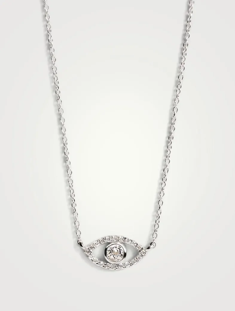 From the Classique collection. This delicate chain necklace features an evil eye pendant centred with a polished gemstone and framed with pavé set white sapphires.