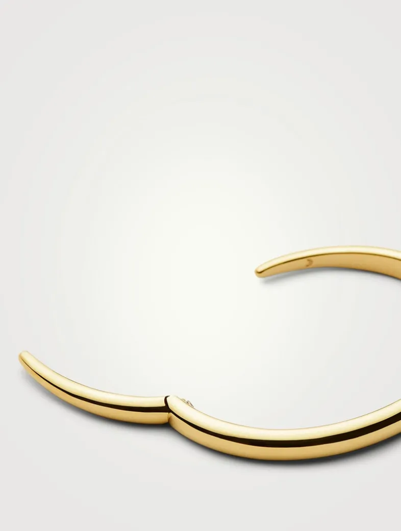 A statement cuff in the brand’s signature claw design. With an easy open and close hinged fastening, the claw cuff is bold worn on its own, or stacked with other bracelets and cuffs for the ultimate armstack.