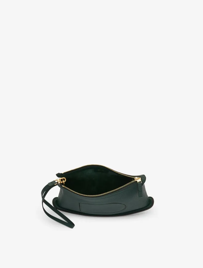 Petite shoulder bag in Taurillon Soft leather in Forest, a crisp, dark green shade for Fall-Winter 2023. Features a removable strap that allows the bag to be worn on the shoulder, around the wrist, or as a pouch. Finished with gold metal hardware.
