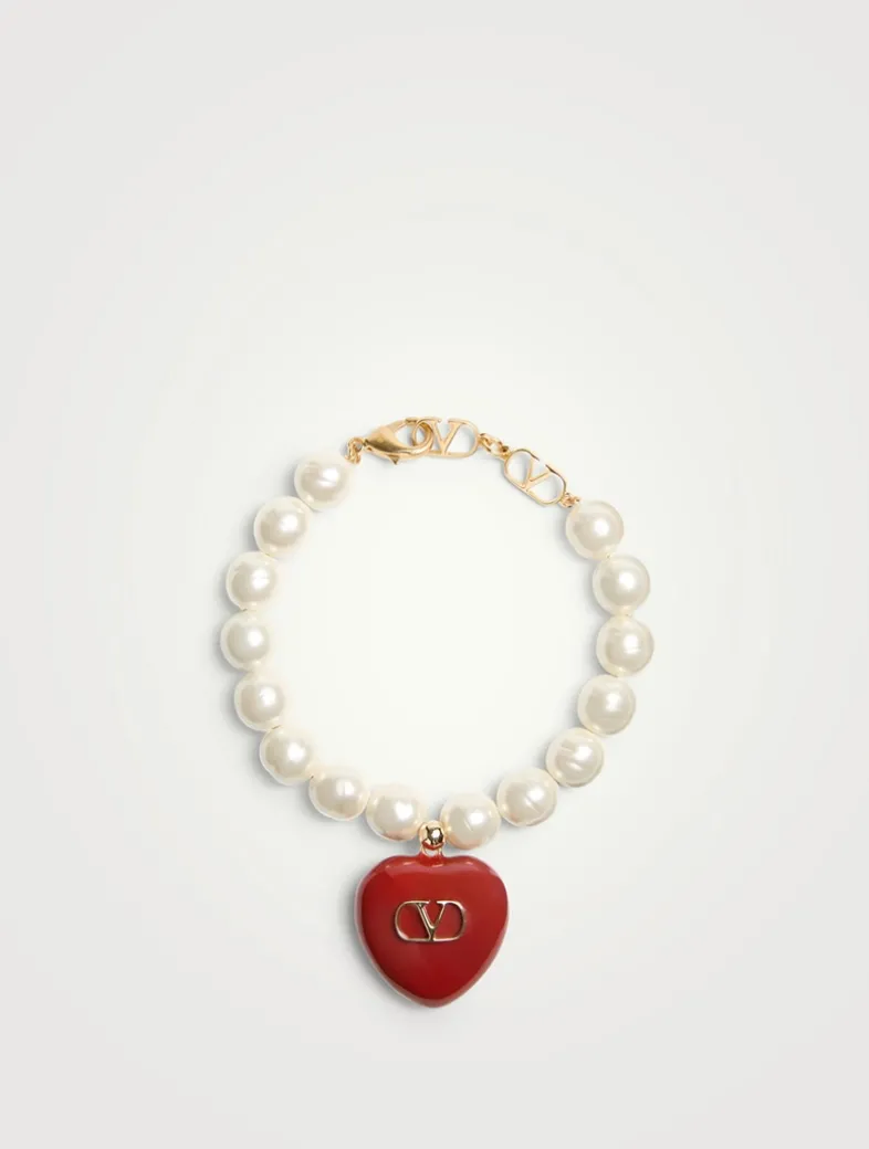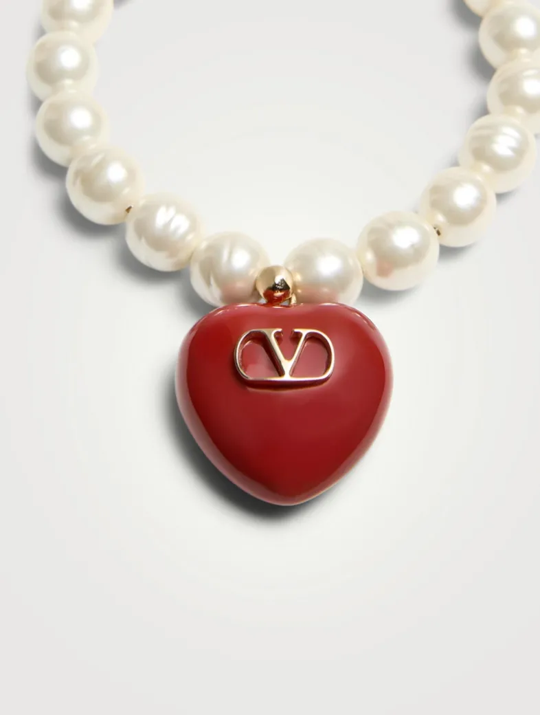 Featuring elegant baroque glass pearls, this bracelet is adorned with a domed heart enamel pendant, accented with gold-tone VLogo Signature detail.