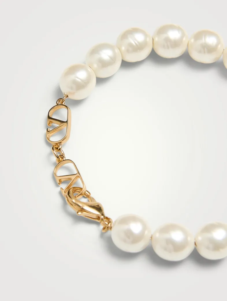 Coeur Royal VLogo And Faux Pearl Bracelet