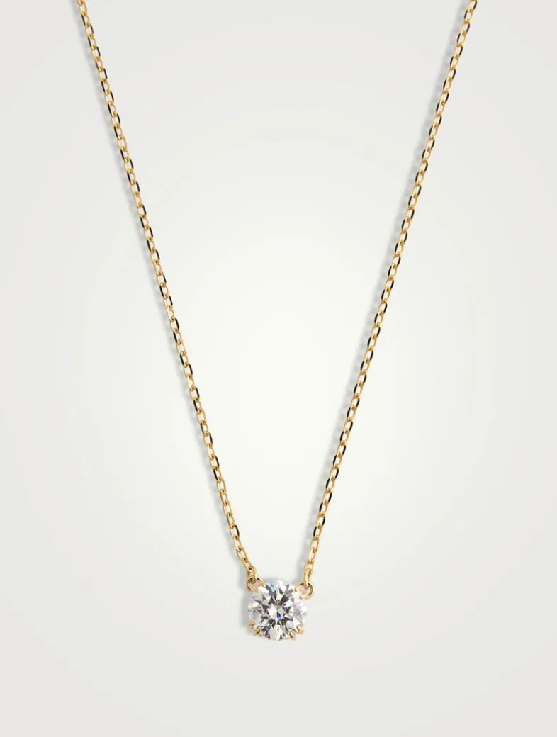 This captivating pendant from the Stilla family features a dazzling pavé side gallery, a striking centre stone, and a gold-tone plated chain finished with three octagon-cut accents.