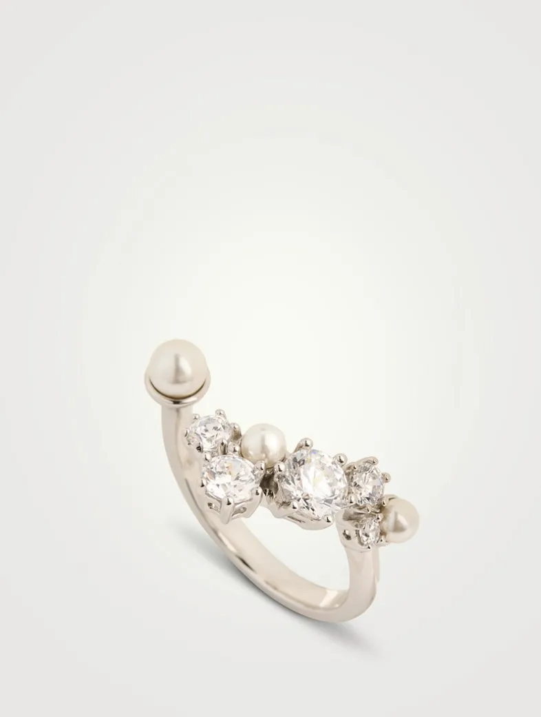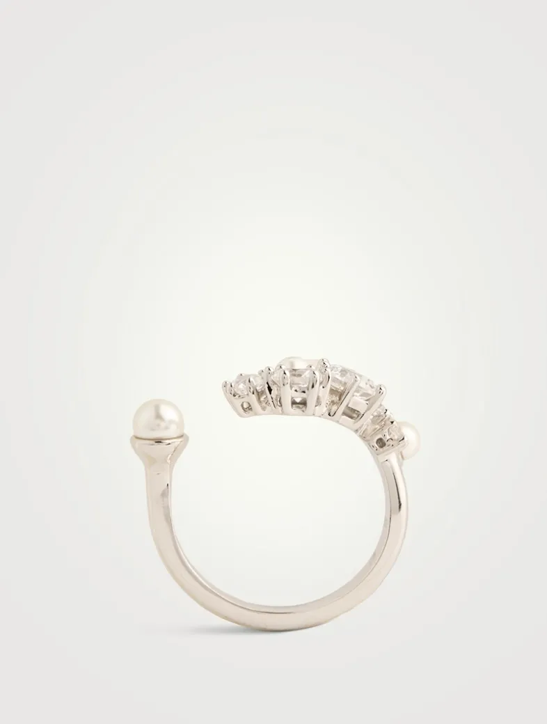 This open design is rhodium-plated and dusted with round Swarovski Zirconia and Swarovski Crystal Pearls in a variety of captivating sizes.