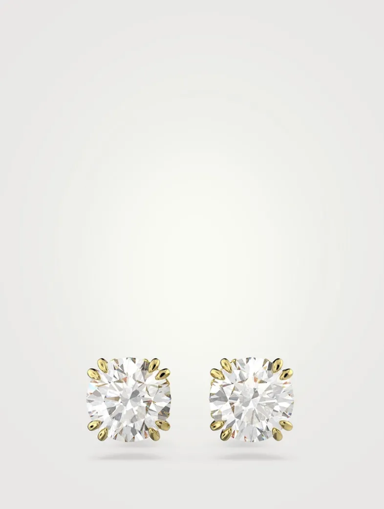 These elegant stud earrings from the Constella family are a wear-forever staple. Featuring eye-catching stones in a double-prong setting, each one is illuminated with pavé on the gallery and finished with gold-tone plating.