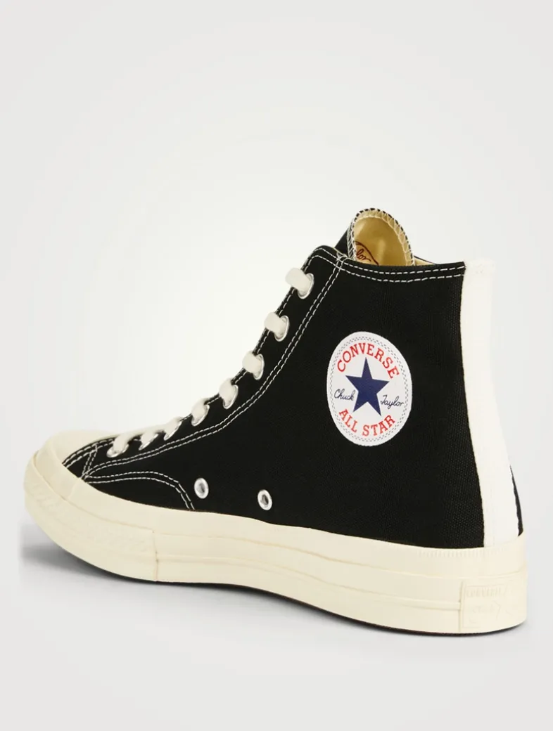CONVERSE and COMME DES GARÇONS teamed up on these unisex lace-up sneakers. The high-tops feature the iconic details of the Chuck Taylor All Star ’70 with the lightweight, durable canvas upper, rubber toe cap and volvanized rubber sole for increased traction. They are decorated with CDG PLAY’s signature heart-and-eyes print, created by New York graphic artist Filip Pagowski and COMME DES GARÇONS creative director Rei Kawakubo.
