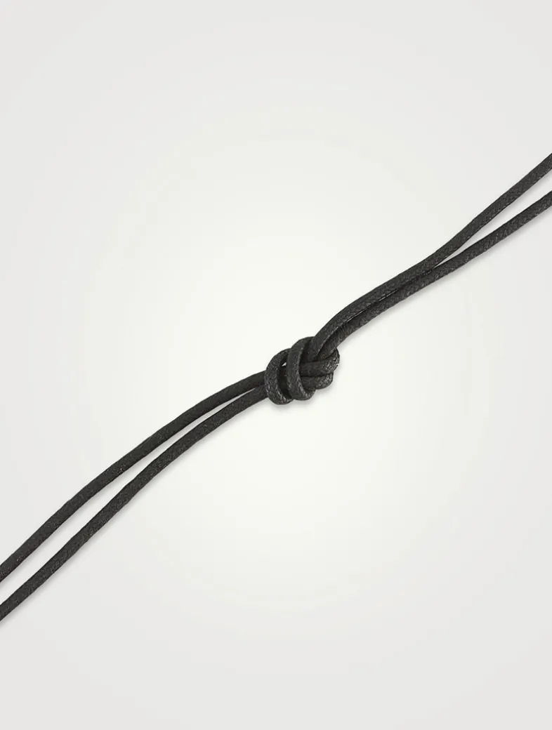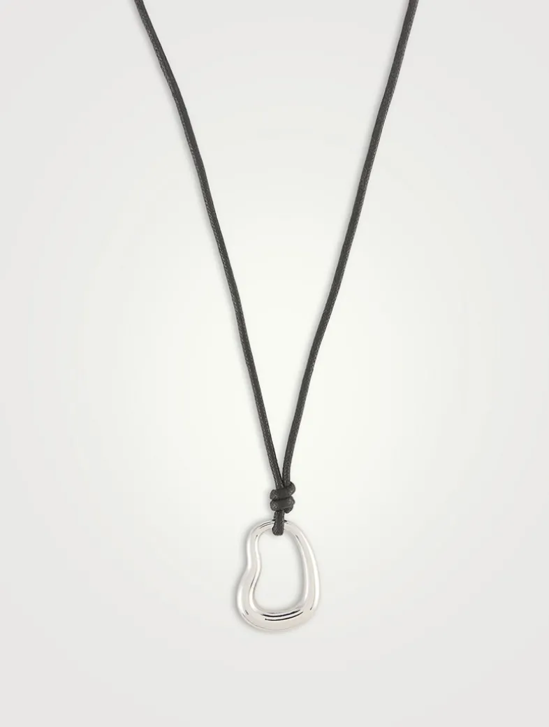 From the Liza Collection, this show-stopping piece features an organically shaped oval pendant strung on black waxed cotton cord. The tie back design allows this versatile necklace to be shortened to accommodate any neckline.