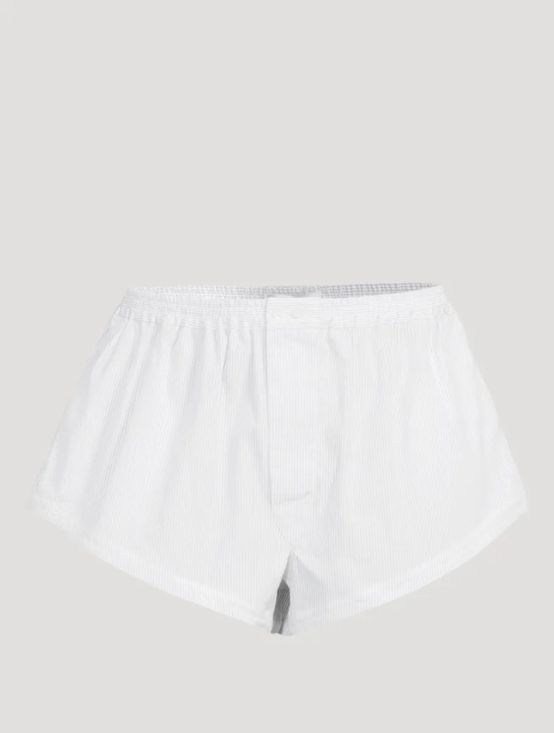 These menswear-inspired shorts are cut in a high-waisted, relaxed-leg silhouette. Made in Italy, they crafted of a lightweight cotton with a subtle pinstripe print.