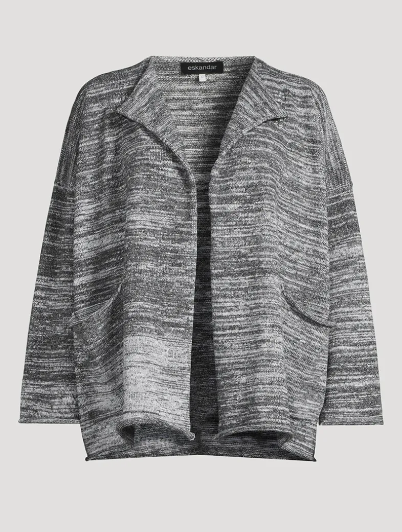 Made in Scotland from a mix of combed cotton and linen, this sweater has a relaxed feel. It is framed by a foldover collar and features patch pockets at the waist.