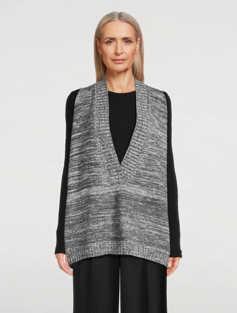 This sleeveless sweater is designed with a plunging deep V-neckline. The combed cotton and linen-blend vest is finished with an A-line silhouette and rib-knit trim.