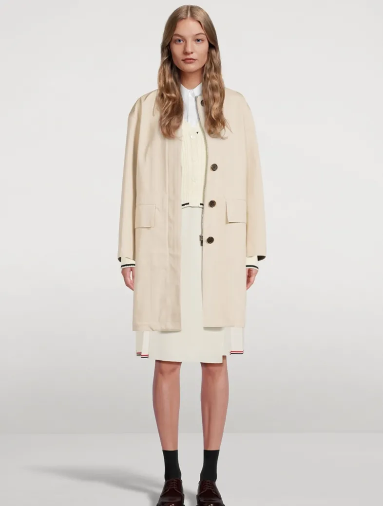 A waterproof finish lends a functional touch to this topper. Crafted from a crisp cotton twill, it has a concealed button and zipper placket with flap pockets at the waist.