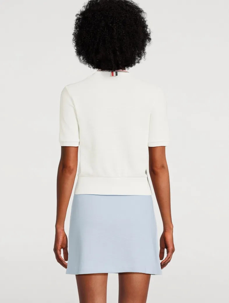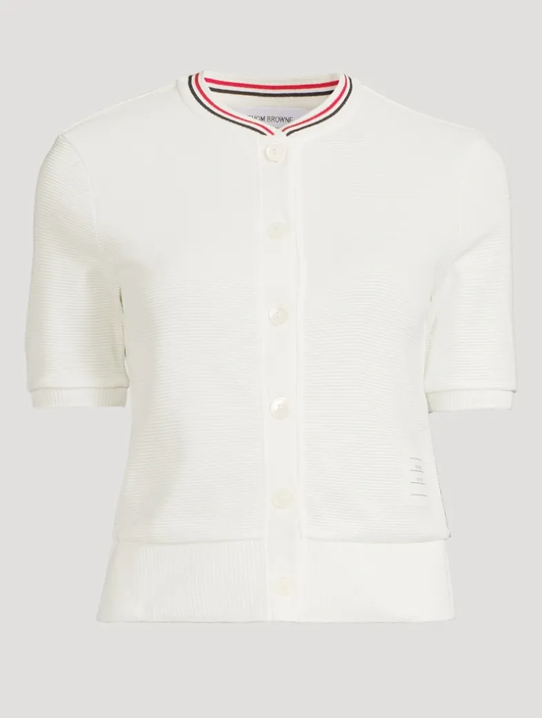 This short-sleeve cardigan is perfect for transitional dressing, crafted from lightweight cotton waffle fabric.