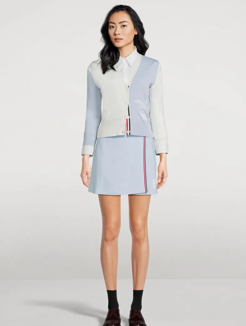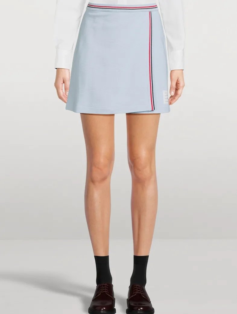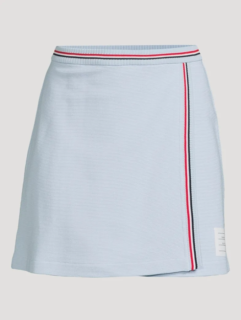 A classic wrap skirt in lightweight cotton waffle fabric, perfect for transitional dressing.