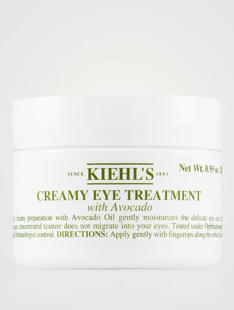 Kiehl’s Creamy Eye Treatment with Avocado is a creamy preparation with Avocado Oil, which gently moisturizes the delicate eye area. The unique, concentrated texture ds not migrate into your eyes. This product is ophthalmologist and dermatologist-tested.