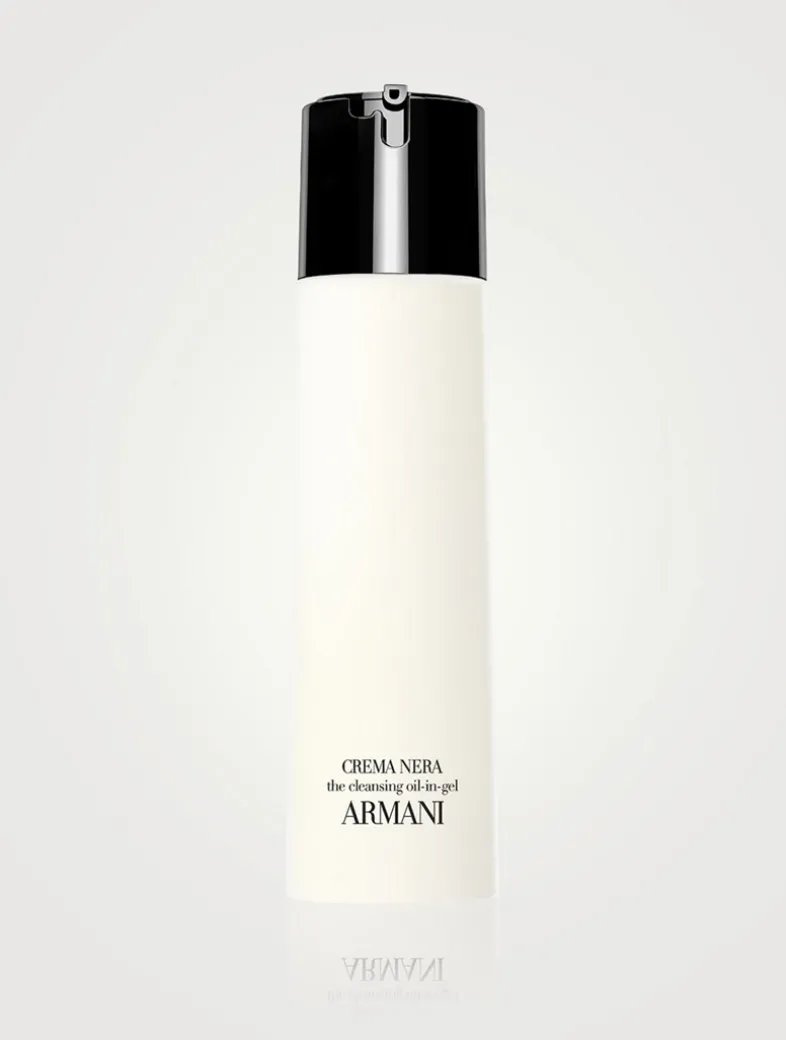 Giorgio Armani presents Crema Nera The Cleansing Oil-in-Gel, a luxurious gel that transforms into a gel-to-oil cleanser, melting away impurities and all traces of face, eye, and lip makeup. Infused with glycerin and Reviscentalis™, it reveals hydrated, brighter, smoother, softer skin. Ideal for all skin types, even sensitive, with day and night use.