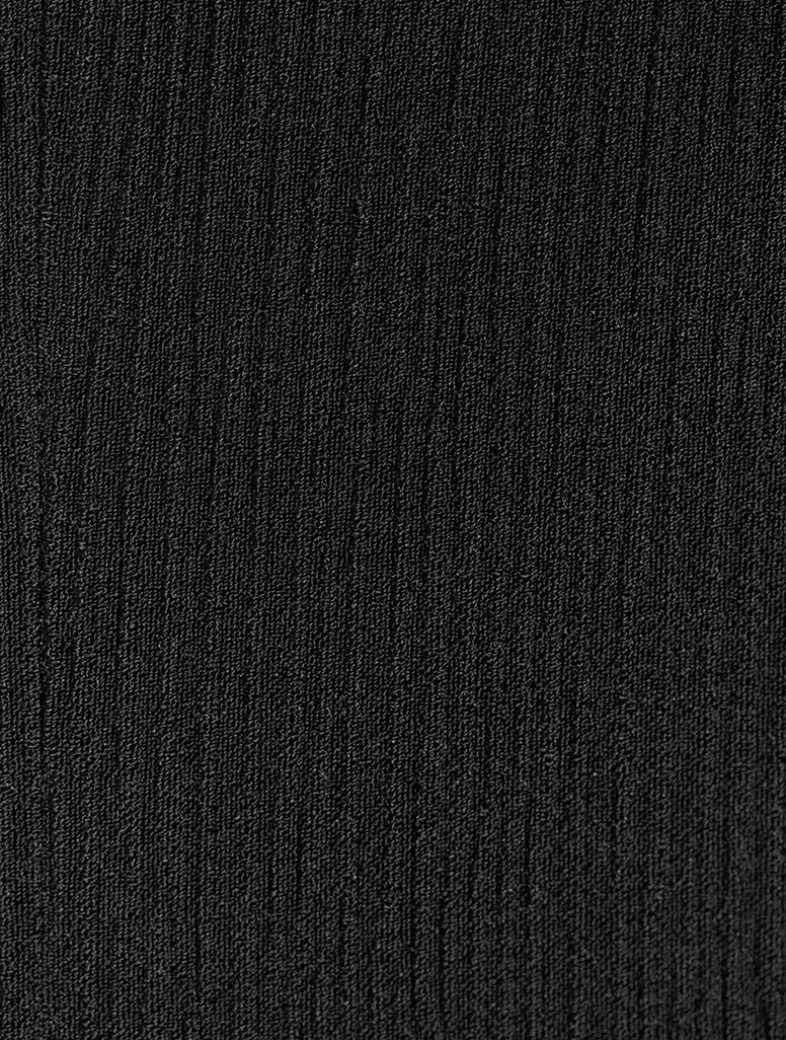 This sleeveless dress is made of a flowing crêpe and is designed with a V-neckline and a flared silhouette.