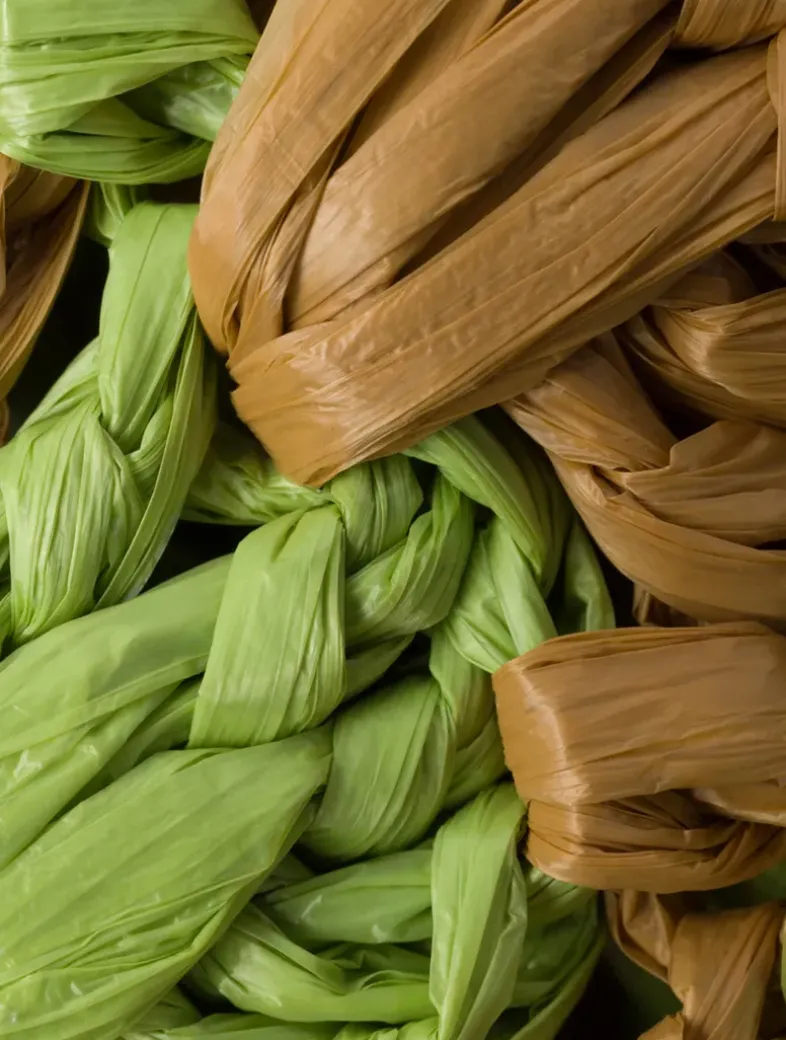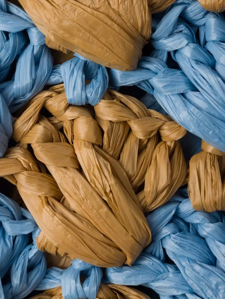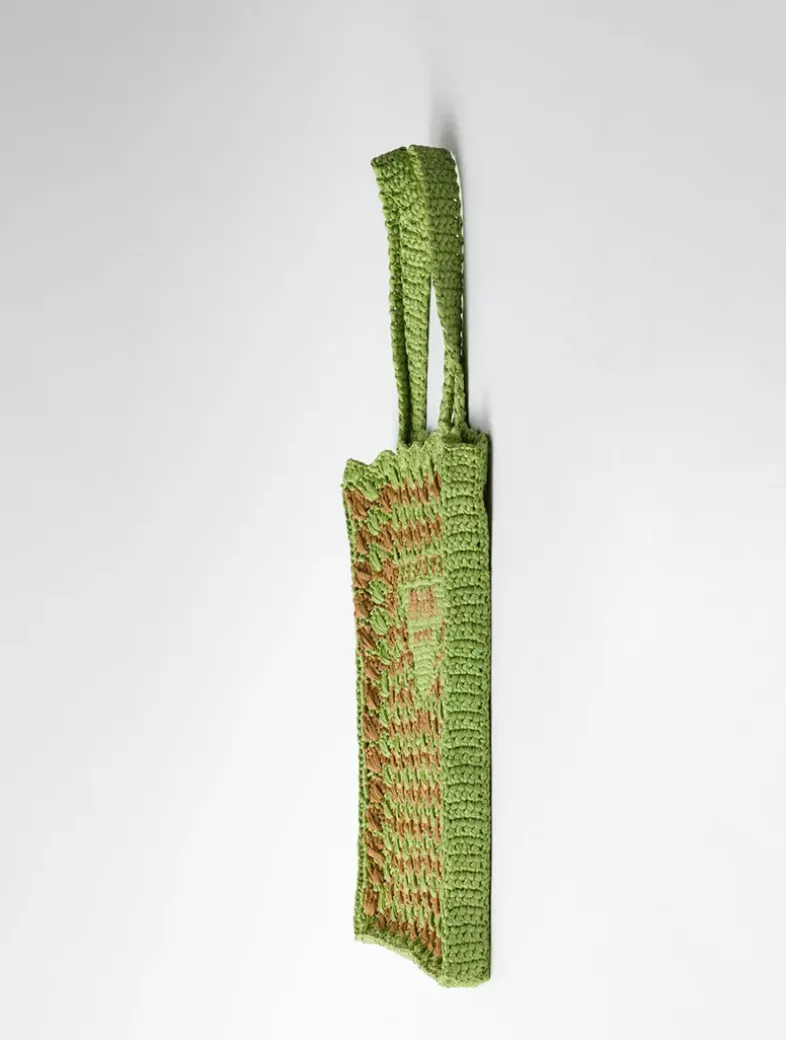 Raffia-effect yarn Crochet handles Lettering logo embroidered on the front Unlined interior