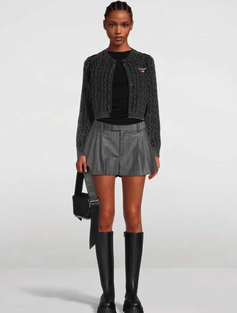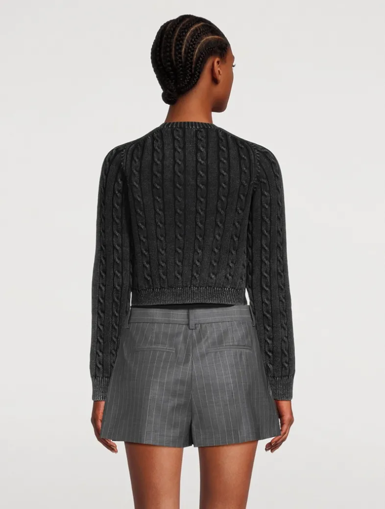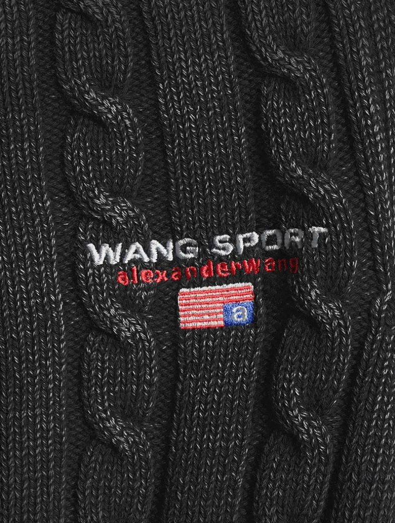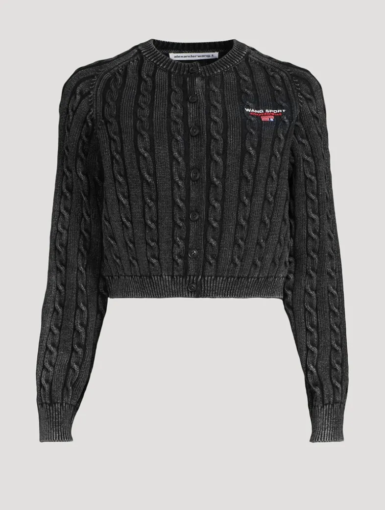 This garment-dyed, acid-washed cardigan reveals an enhanced high-low tonal effect. It is made of organic high-twist cotton in mid-weight for easy-to-layer comfort. A ‘wang sport’ logo at the chest completes this cropped sweater.