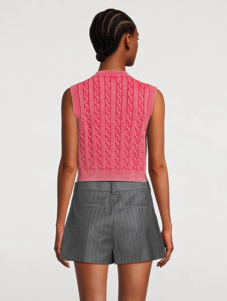 This garment-dyed acid-washed vest reveals an enhanced high-low tonal effect; it is made of organic high-twist cotton in mid-weight for easy-to-layer comfort. A ‘wang sport’ logo at the chest completes this cropped sweater-dressing style.