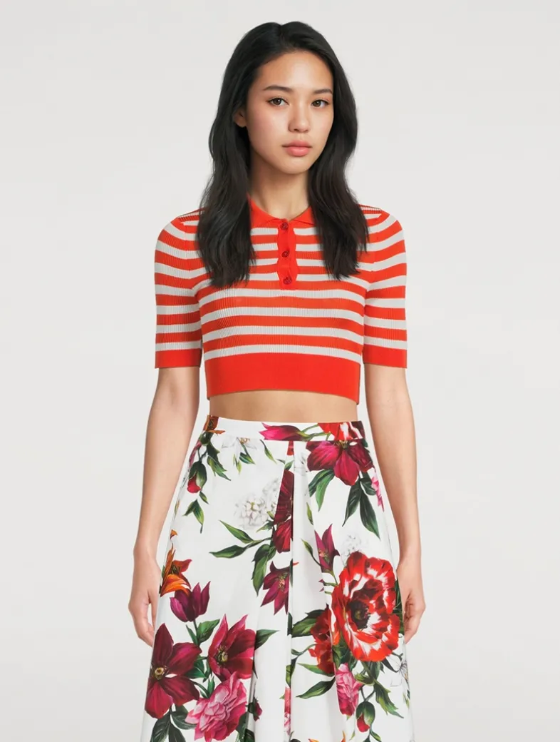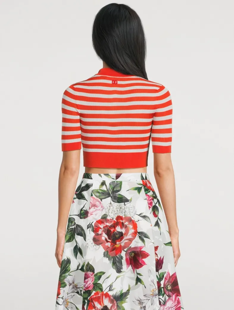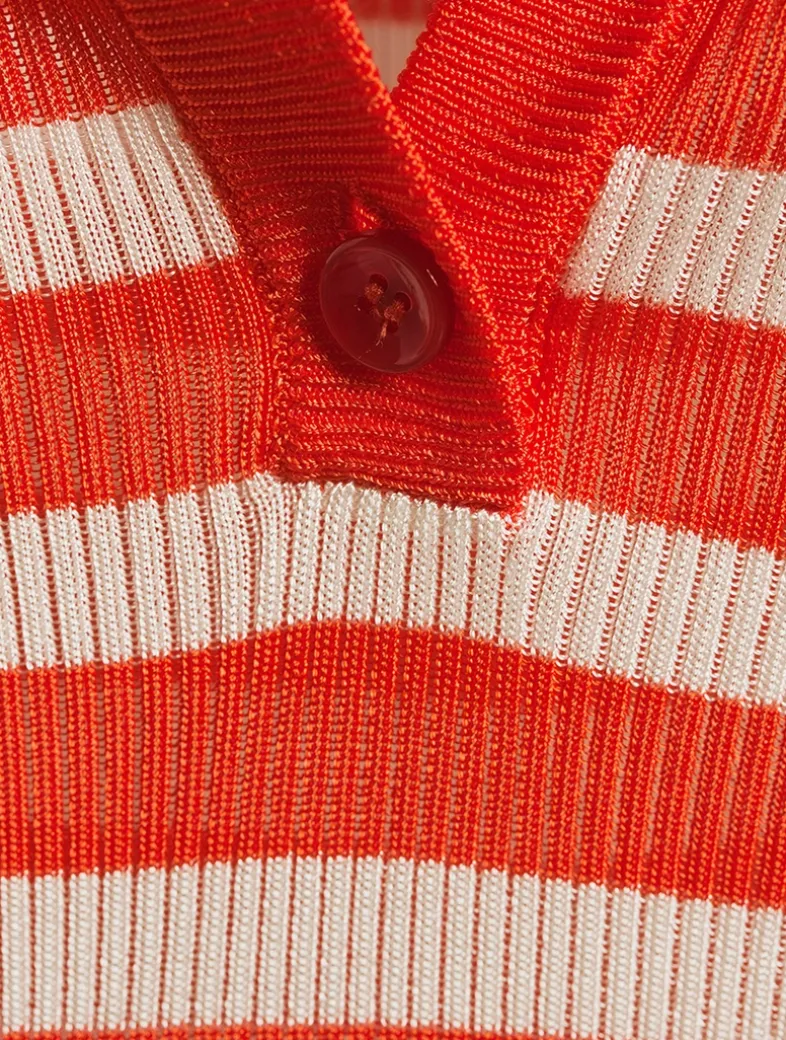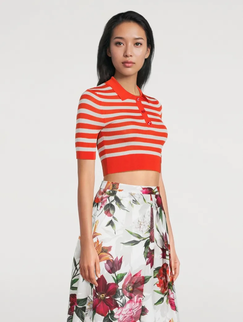 Made of viscose with a special rib knit, this cropped polo offers a touch of elegance and comfort, perfect for any occasion.