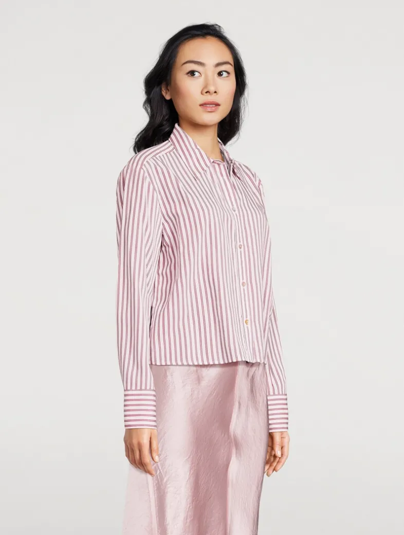Gardening and utility planted the seeds for this season’s collection, reflected here in this till-inspired stripe. Cropped and slightly boxy, this easy button-up is cut from an Italian viscose blend for a lightweight and breathable feel into the warmer months.