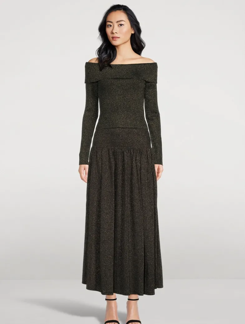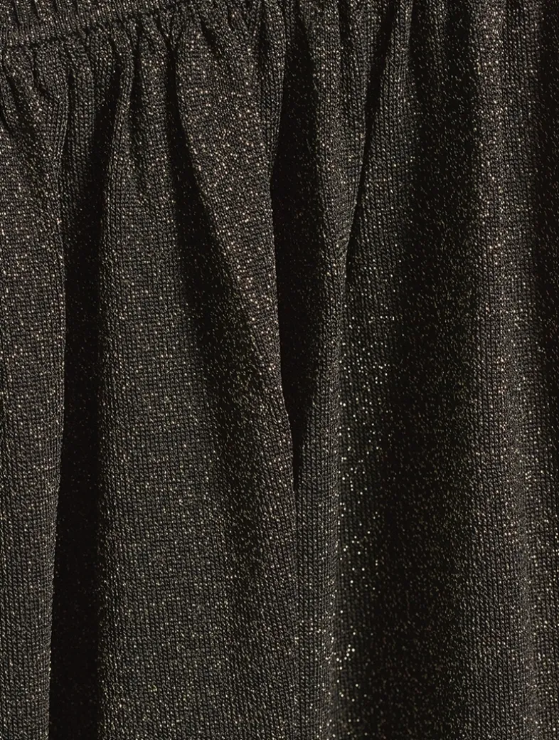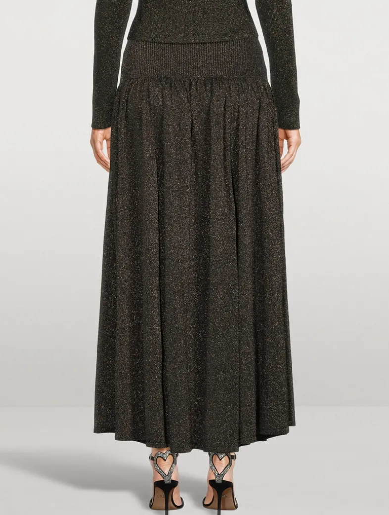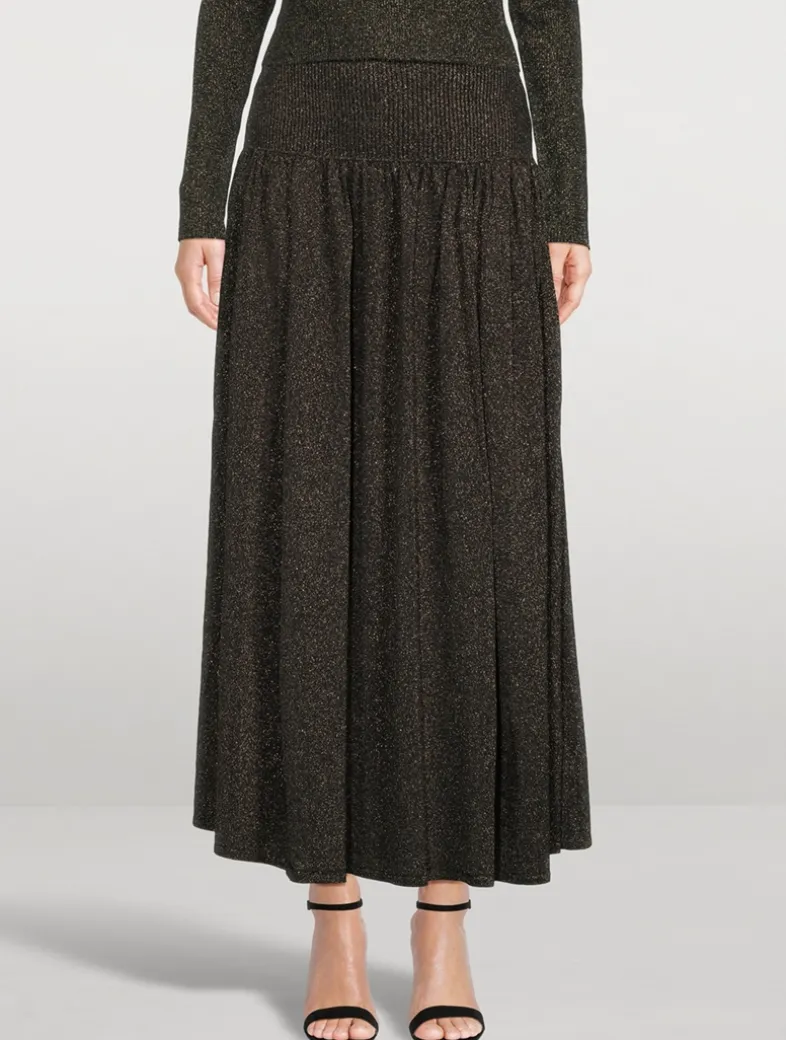 Shimmering metallic threads are woven through this skirt, nodding to disco-glam styling. It has a wide elastic waistband that falls to an ankle-grazing A-line skirt.