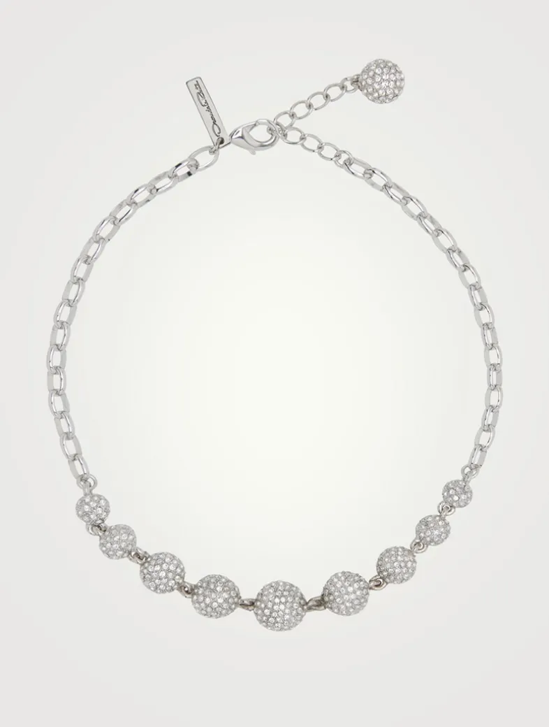 This adjustable chain-link necklace features dazzling spheres set with glass crystals. An engraved logo plaque brands the closure.