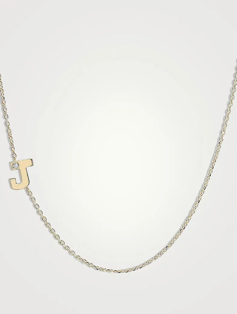 From the Love Letter Collection. Set asymmetrically on a classic chain, this necklace features a delicate gold letter is set with a single bezel-set diamond.