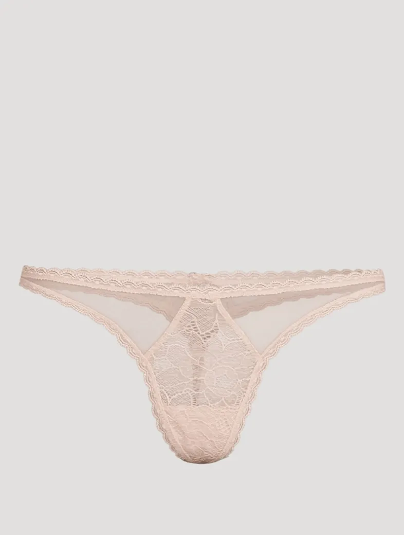 Look no further than the Dahlia collection to differentiate your everyday underpinnings with the softest patterned French lace. Too beautiful to keep hidden, it’s perfect for layering under clothes that let the lace peek through. The Dahlia Lace Thong features panels of floral French lace and soft mesh enclosed by a scalloped French lace trim.
