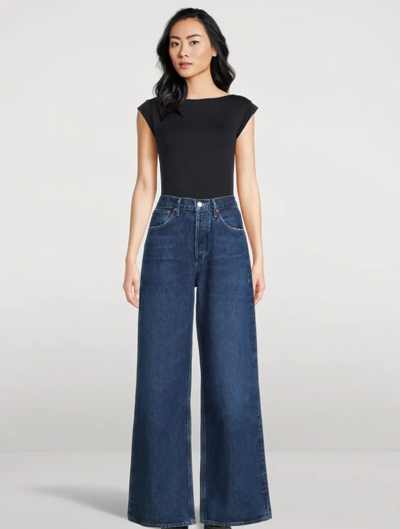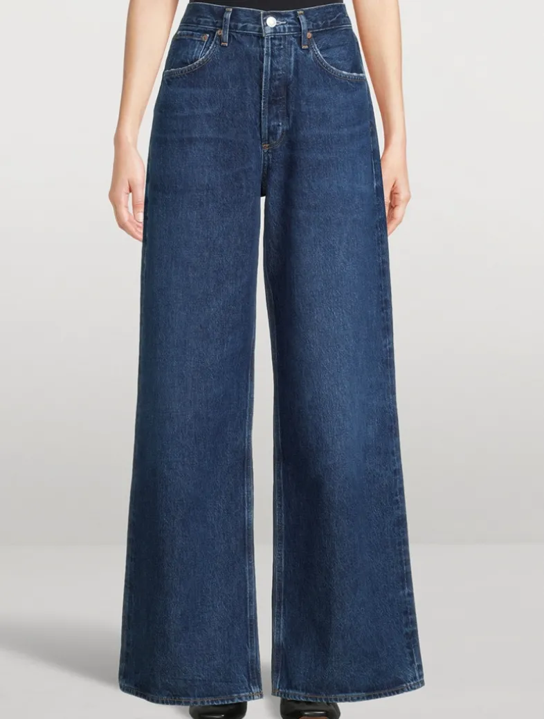 These full-length jeans feature a waist-accentuating high rise, a relaxed cut through the hips, and a wide leg. Crafted from a zero-stretch regenerative organic cotton with an authentic vintage hand.