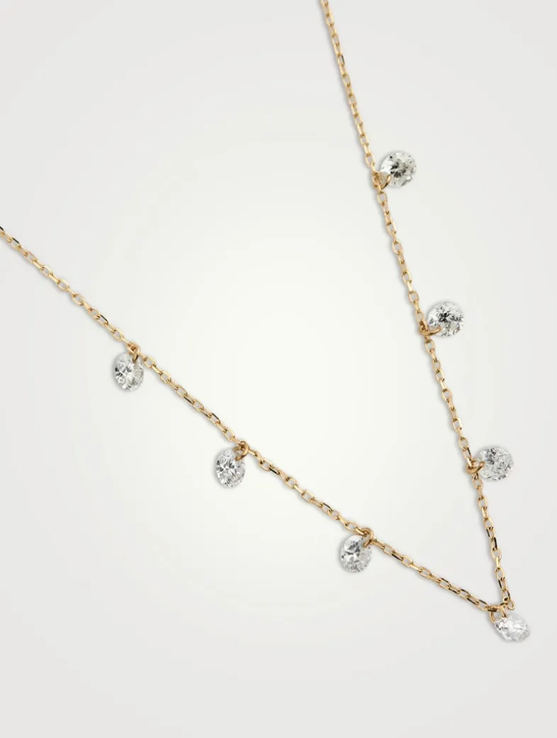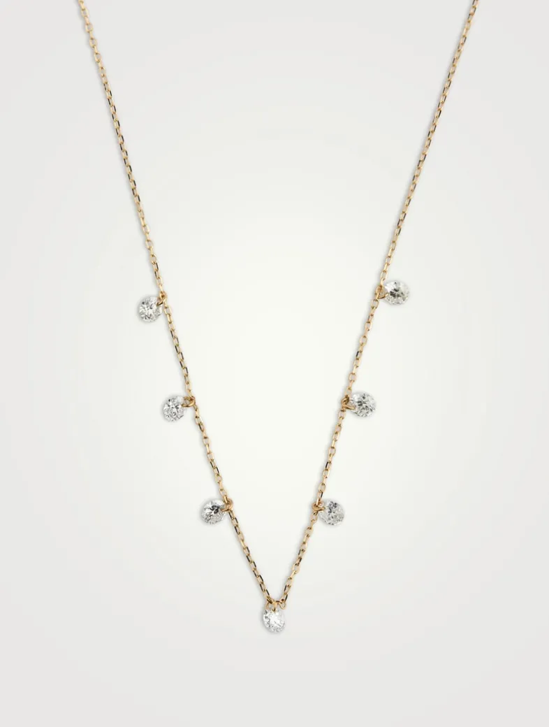 An ode to the mother of Perseus in Greek mythology, the Danaé collection is inspired by the Argive princess’s delicate strength. Crafted with a dainty chain, this necklace is set with seven dangling diamonds. The diamonds are laser-drilled inserting a ring to fix them to the chain.