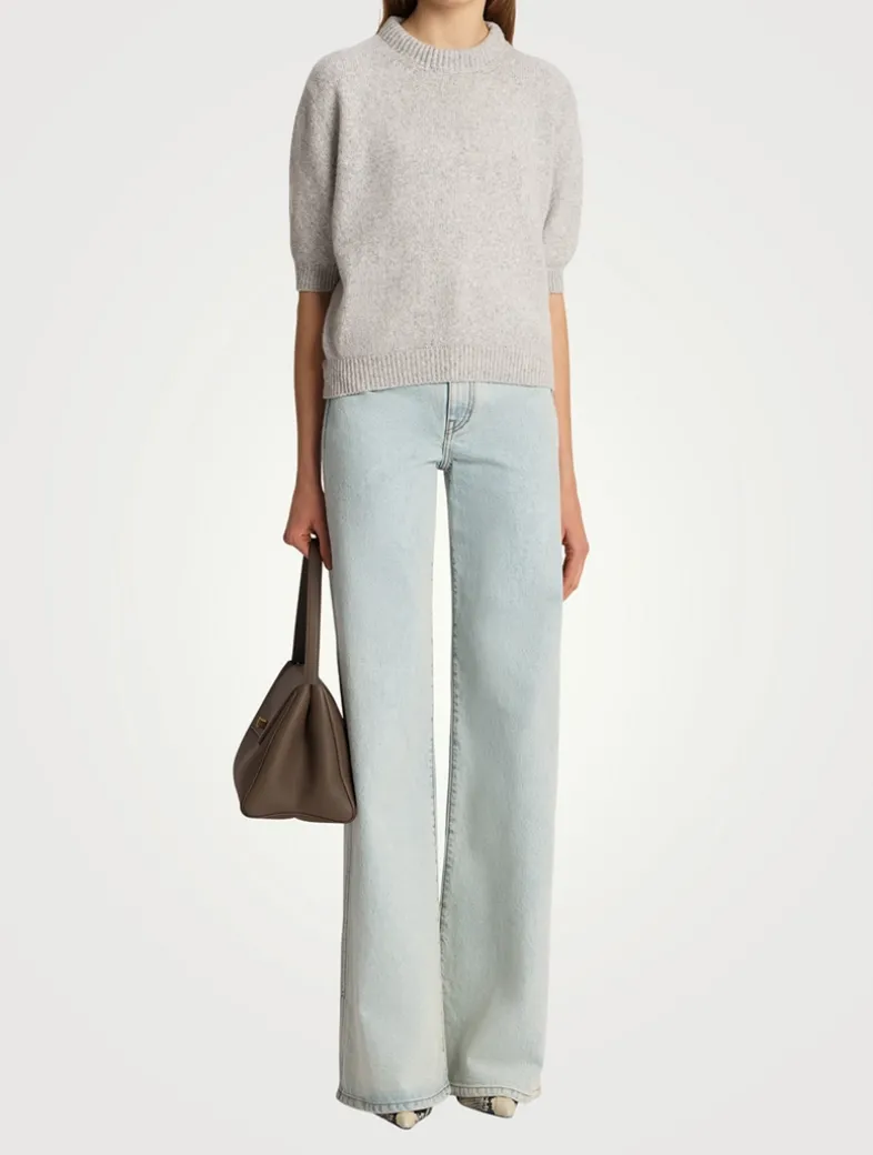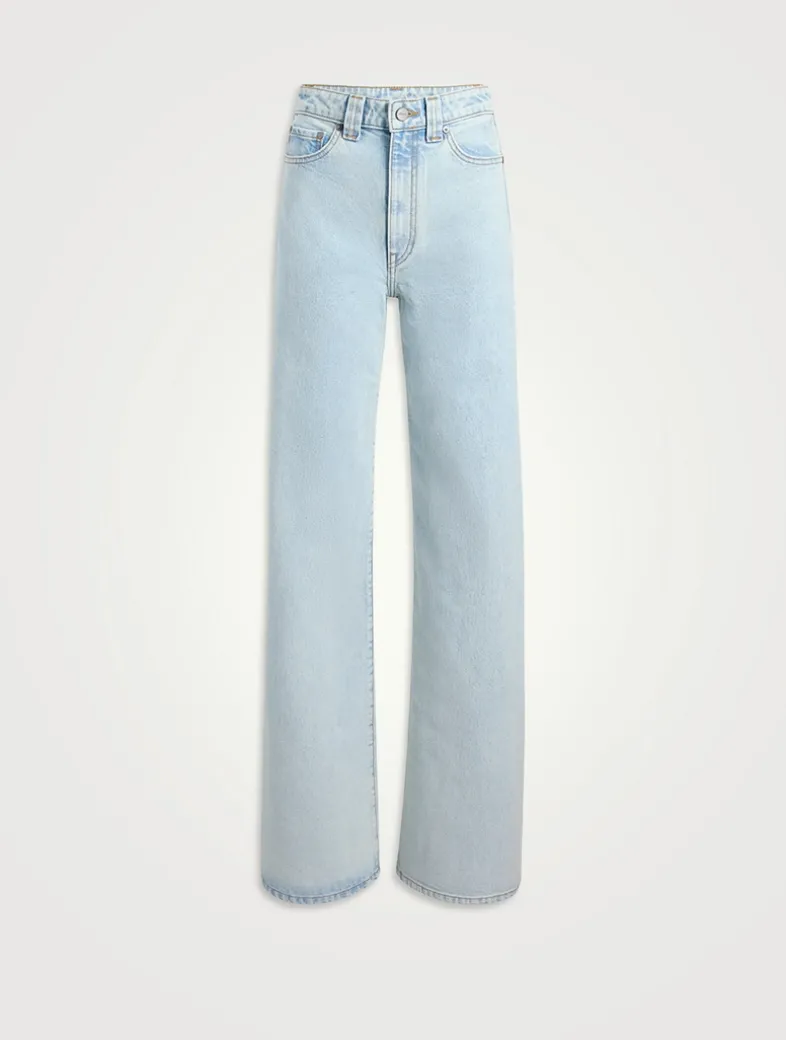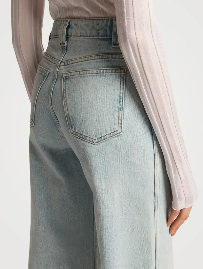 Combining the ease of wide-leg trousers with classic five-pocket styling, this high-waisted denim silhouette elongates the legs with a refined flare below the knee.
