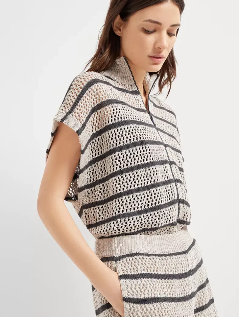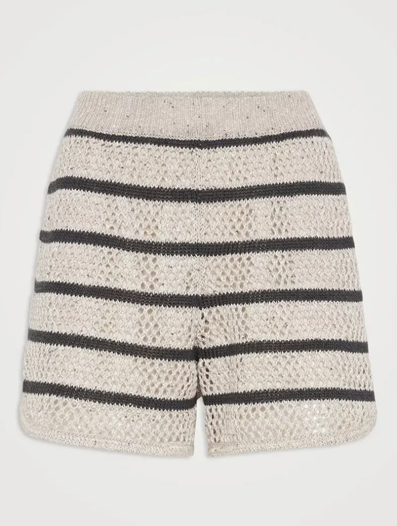 Dazzling striped net knit shorts in linen
