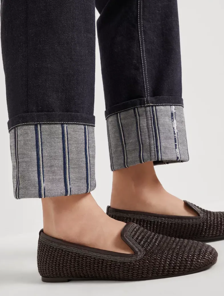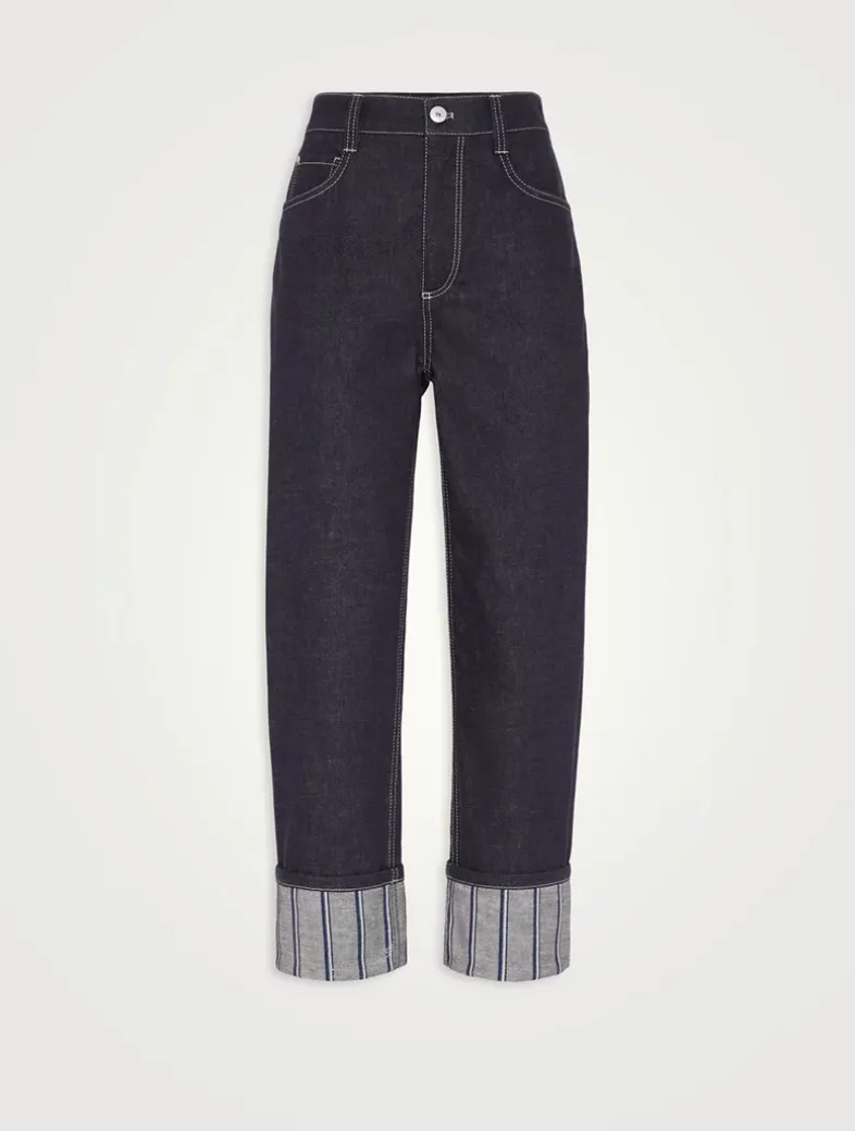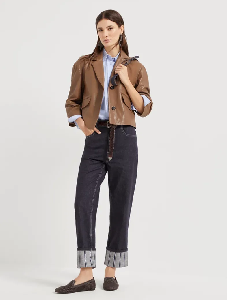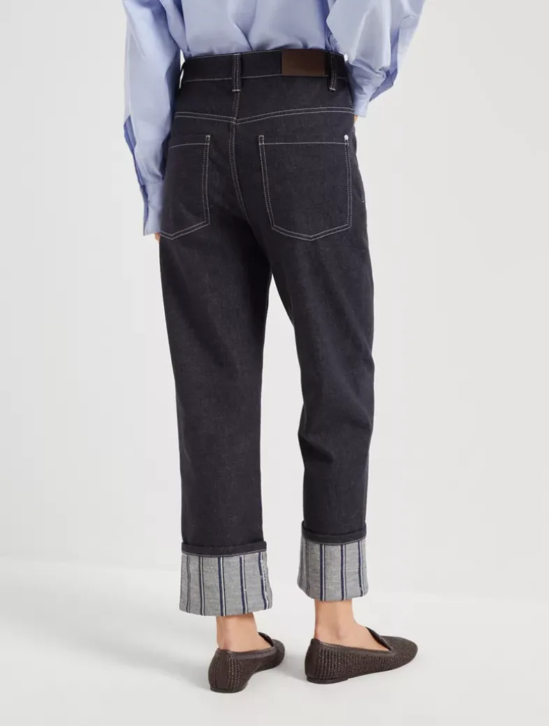 No-fade denim cropped trousers with dazzling regimental embroidery