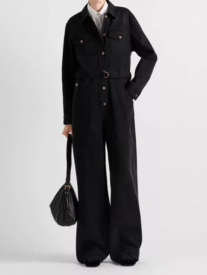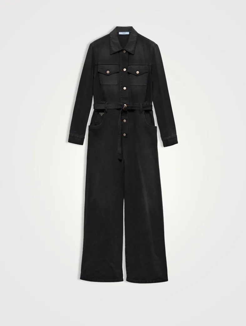 Washed treatment Garment-Dyed Loose fit Unlined garment Shirt-style collar Front button closure Long sleeves Matching stitching Triangle logo Center-back length: 128 cm, Size: 38 Flapped button pockets on the chest Rounded front pockets with coin pocket Belt with buckle Prada Milano logo label on the back