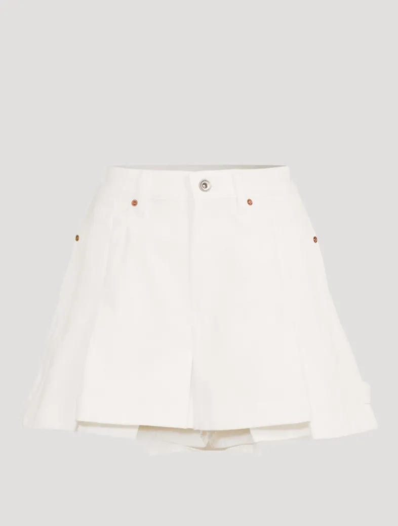 The perfect blend of feminine flair and comfort, this skort features a pleated skirt in a flattering mini A-line silhouette while offering full freedom of movement. Crafted in Japan from cotton denim, the style is complete with a zip fly and button closure.