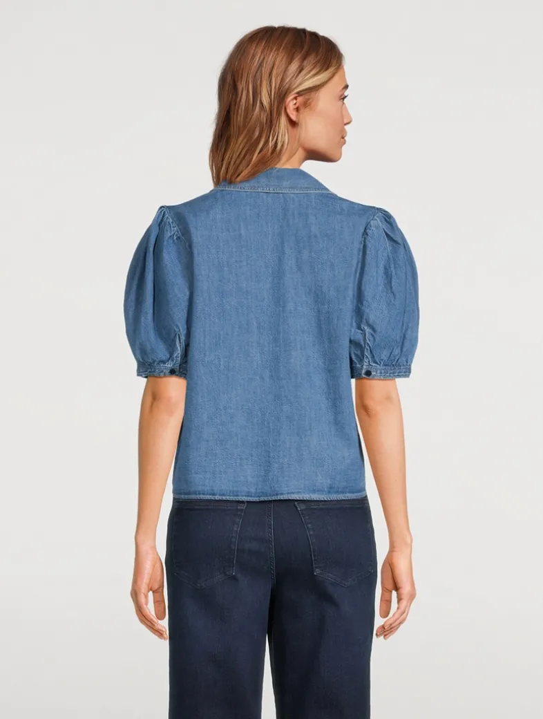 FRAME has updated their popular Sailor Blouse in sustainable denim. The oversized collar, flattering V-neckline and pleated sleeves all nod to nautical style in a subtle way.