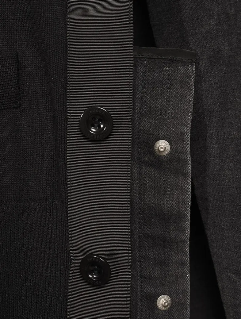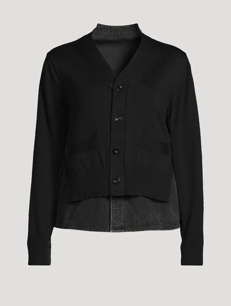 This long-sleeve sweater is designed with a V-neckline and buttoned closure. Crafted in a cotton blend, it is finished with tonal denim details.