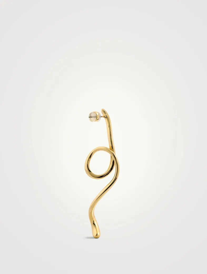These sculptural ribbon-shaped statement earrings from the Dezi x Luv Aj collection feature swirled, long metal studs with waterproof, tarnish-free 14K gold plating. Made with hypoallergenic surgical steel posts, they’re 100% nickel- and cadmium-free.