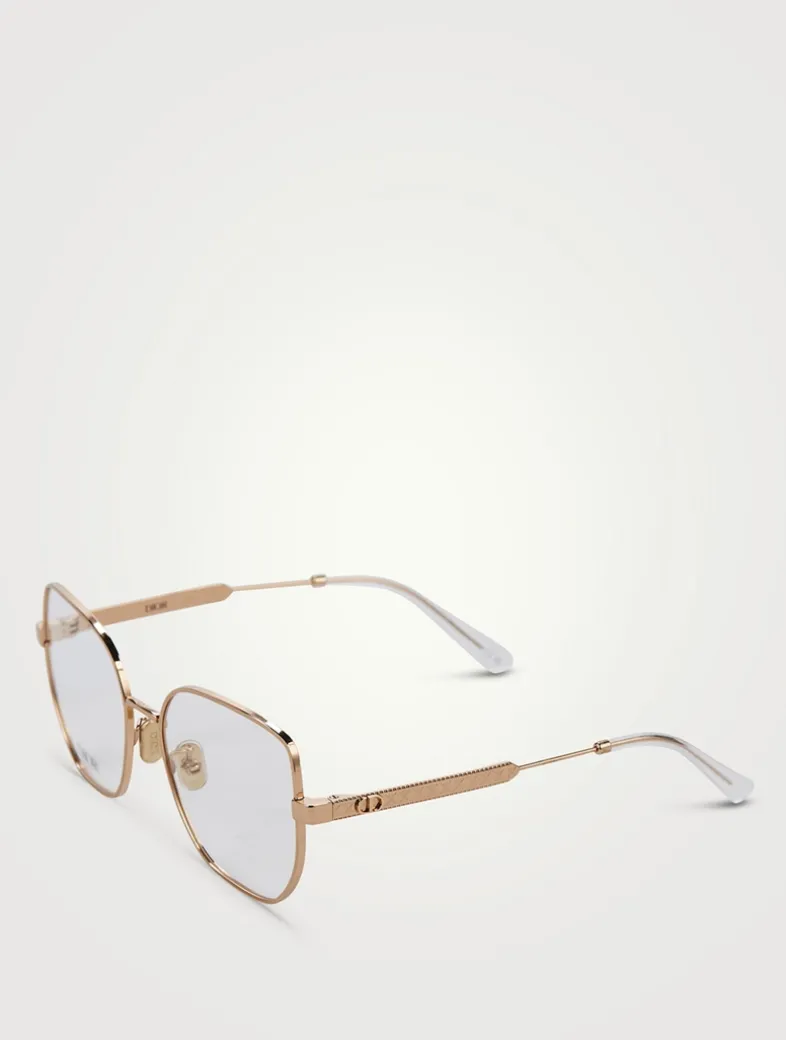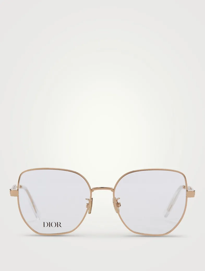 The DiorCannage line embodies for the iconic cannage code on a metal style. A timeless, oversized design for a modern look, these metal eyeglasses are finished with detailed branding on the temples and