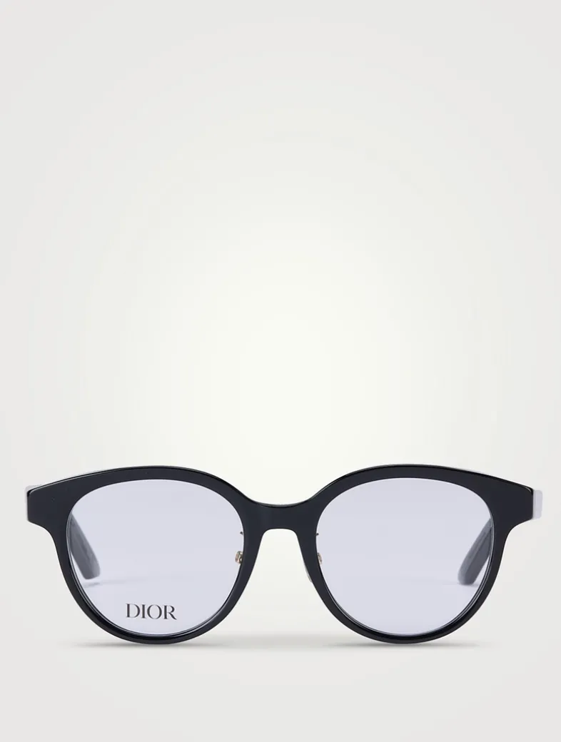 These round optical acetate eyeglasses feature an elegant, timeless design with a bevel effect on the front, offering a feminine and easy-to-wear look perfect for everyday style.